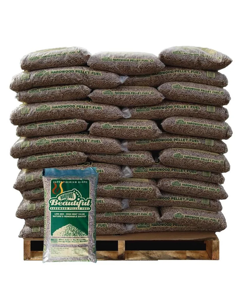 Barefoot Beautiful Hardwood Pellet Fuel – Easy Lift 23 lb Bags, 1 Ton Pallet